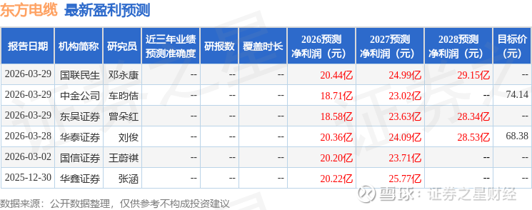 最新盈利预测明细如下: