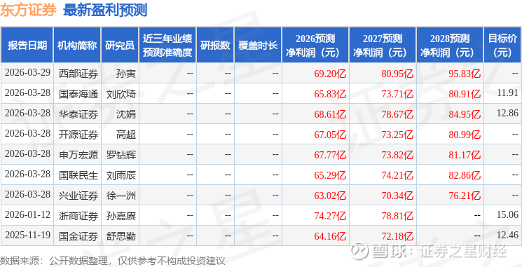 最新盈利预测明细如下: