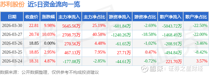 3月30日的资金流向数据方面,主力资金净流入5645.56万元,占总成交额25.19%,游资资金净流出601.84万元,占总成交额2.69%,散户资金净流出5043.72万元,占总成交额22.5%。