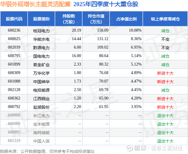 华银外延增长主题灵活配置的前十大重仓股如下: