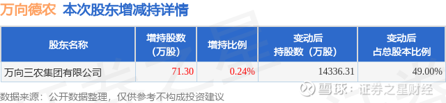 证券之星消息,3月30日万向德农发布公告《万向德农:关于持股5%以上股东权益变动触及1%刻度暨增持计划进展的提示性公告》,其股东万向三农集团有限公司于2026年3月30日合计增持71.3万股,占公司目前总股本的0.2437%,变动期间该股股价上涨3.86%,截止3月30日收盘报8.87元。