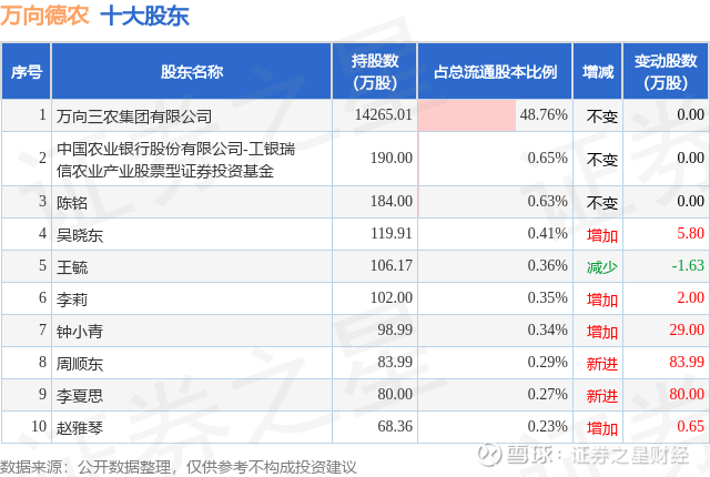 根据万向德农2025年三季报公布的十大股东详情如下: