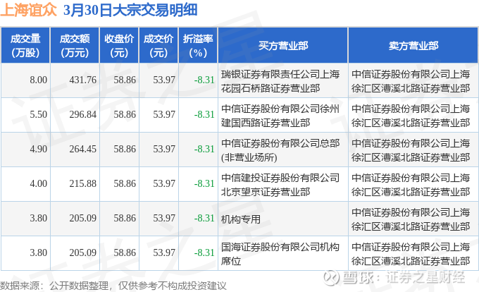 证券之星消息,3月30日上海谊众发生大宗交易,交易数据如下: