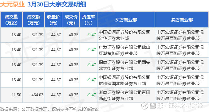 证券之星消息,3月30日大元泵业发生大宗交易,交易数据如下: