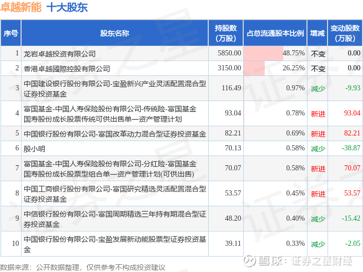 根据卓越新能2025年三季报公布的十大股东详情如下: