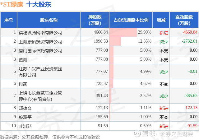 根据*ST绿康2025年年报公布的十大股东详情如下:
