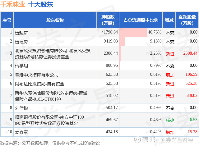 根据千禾味业2025年三季报公布的十大股东详情如下: