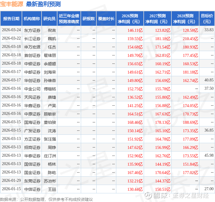最新盈利预测明细如下: