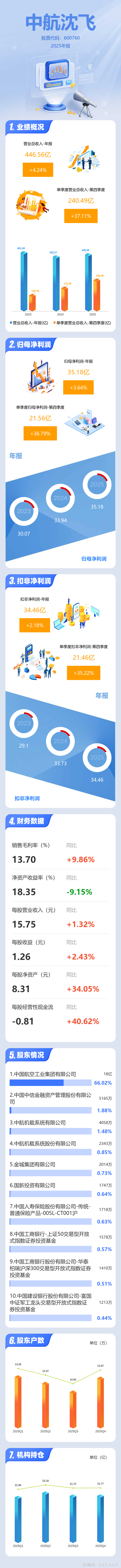 证券之星消息,中航沈飞2025年年报显示,当年度公司主营收入446.56亿元,同比上升4.25%;归母净利润35.18亿元,同比上升3.65%;扣非净利润34.46亿元,同比上升2.19%;其中2025年第四季度,公司单季度主营收入240.49亿元,同比上升37.11%;单季度归母净利润21.56亿元,同比上升36.8%;单季度扣非净利润21.46亿元,同比上升35.23%;负债率66.88%,投资收益1113.53万元,财务费用-5189.55万元,毛利率13.7%。
