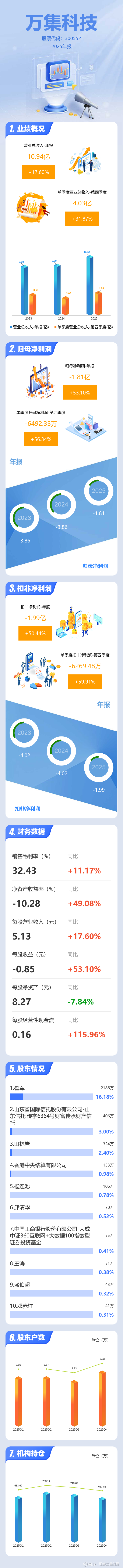 证券之星消息,万集科技2025年年报显示,当年度公司主营收入10.94亿元,同比上升17.61%;归母净利润-1.81亿元,同比上升53.1%;扣非净利润-1.99亿元,同比上升50.44%;其中2025年第四季度,公司单季度主营收入4.03亿元,同比上升31.87%;单季度归母净利润-6492.33万元,同比上升56.35%;单季度扣非净利润-6269.48万元,同比上升59.91%;负债率34.49%,投资收益2112.71万元,财务费用592.47万元,毛利率32.43%。