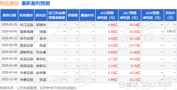 最新盈利预测明细如下: