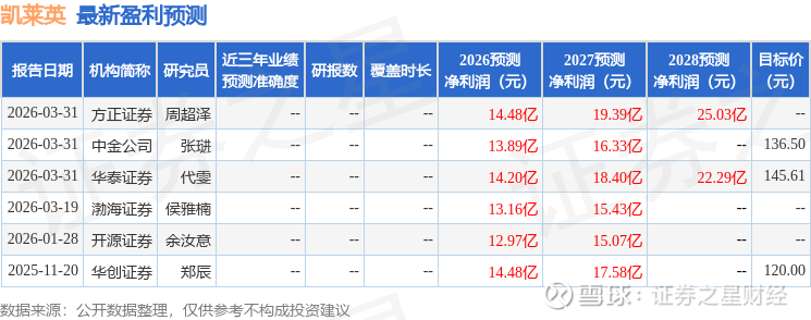 最新盈利预测明细如下: