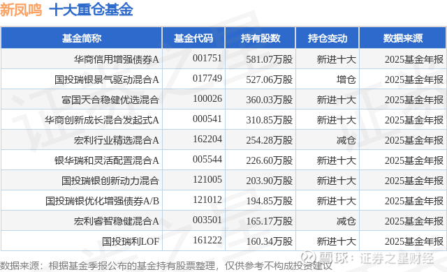 重仓新凤鸣的前十大公募基金请见下表: