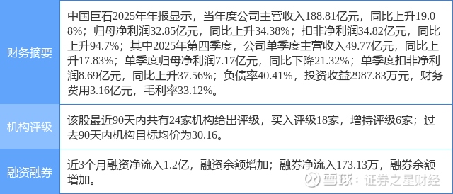 2026年3月20日,国金证券研究员李阳,赵铭发布了对中国巨石的研报《符合预期,电子布涨价弹性逐步呈现》,该研报对中国巨石给出“买入”评级。研报中预计公司2026-2028年归母净利润分别为60.05、70.36和74.34亿元,现价对应动态PE分别为16x、13x、13x,维持“买入”评级。证券之星数据中心根据近三年发布的研报数据计算,该研报作者对此股的盈利预测准确度为92.4%。