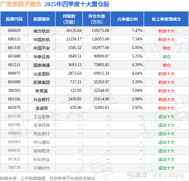 根据2025基金年报公募基金重仓股数据,重仓该股的公募基金共132家,其中持有数量最多的公募基金为广发基金的广发多因子混合。广发多因子混合目前规模为172.93亿元,最新净值4.742(3月31日),较上一交易日下跌1.96%,近一年上涨24.65%。该公募基金现任基金经理为唐晓斌 杨冬。杨冬在任的基金产品包括:广发价值领航一年持有混合A,管理时间为2022年6月2日至今,期间收益率为107.04%;广发稳健策略混合A,管理时间为2024年1月4日至今,期间收益率为49.46%;广发均衡成长混合A,管理时间为2024年4月23日至今,期间收益率为47.06%。唐晓斌在任的基金产品包括:广发瑞誉一年持有期混合A,管理时间为2022年1月19日至今,期间收益率为70.17%;广发价值领航一年持有混合A,管理时间为2022年6月2日至今,期间收益率为107.04%;广发远见智选混合A,管理时间为2022年11月22日至今,期间收益率为59.52%。