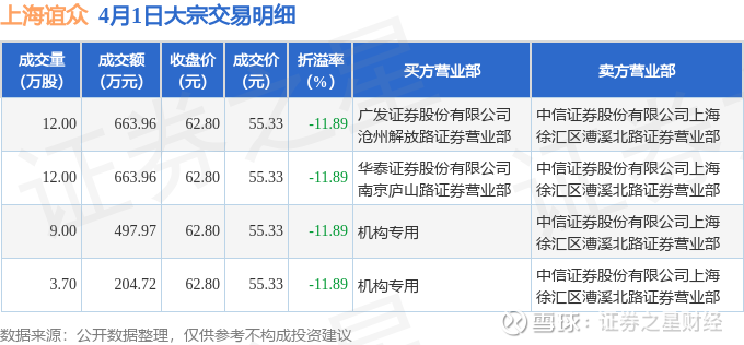 证券之星消息,4月1日上海谊众发生大宗交易,交易数据如下:
