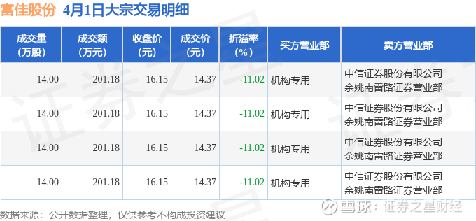 证券之星消息,4月1日富佳股份发生大宗交易,交易数据如下: