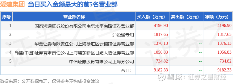 证券之星消息,沪深交易所2026年4月1日公布的交易公开信息显示,爱建集团(600643)因有价格涨跌幅限制的日收盘价格涨幅偏离值达到7%的前五只证券登上龙虎榜。此次是近5个交易日内第1次上榜。