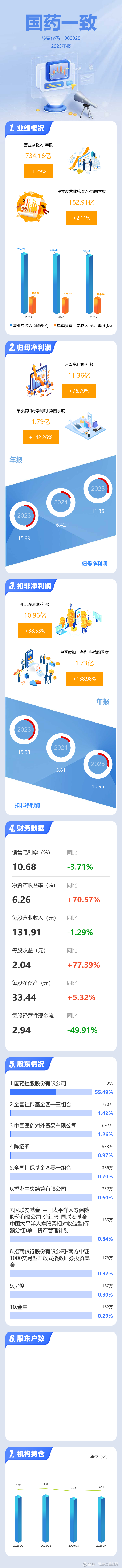 证券之星消息,国药一致2025年年报显示,当年度公司主营收入734.16亿元,同比下降1.29%;归母净利润11.36亿元,同比上升76.8%;扣非净利润10.96亿元,同比上升88.53%;其中2025年第四季度,公司单季度主营收入182.91亿元,同比上升2.12%;单季度归母净利润1.79亿元,同比上升142.27%;单季度扣非净利润1.73亿元,同比上升138.98%;负债率55.95%,投资收益2.18亿元,财务费用1.83亿元,毛利率10.68%。