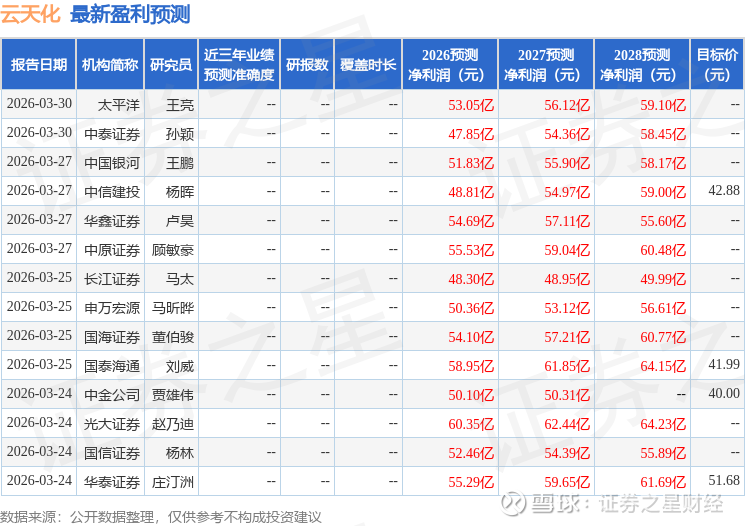 最新盈利预测明细如下: