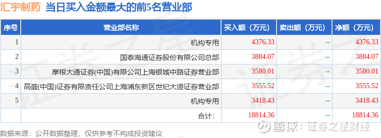 证券小知识:龙虎榜是交易所披露的竞价交易公开信息,现身龙虎榜的个股都是当日最为活跃的个股,是投资者日常重点关注的数据。交易所公布当日买入金额和卖出金额前五名的席位,其中一些席位代表特殊意义,如机构专用席位是指基金专用席位、券商自营专用席位、社保专用席位、券商理财专用席位、保险机构专用席位、保险机构租用席位、QFII专用席位等机构投资者买卖证券的专用通道和席位。深股通专用、