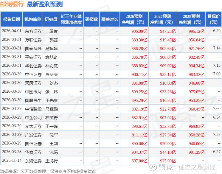 东兴证券股份有限公司林瑾璐,田馨宇近期对邮储银行进行研究并发布了研究报告《2025年报点评:规模维持较快增长,中收表现亮眼》,给予邮储银行买入评级。