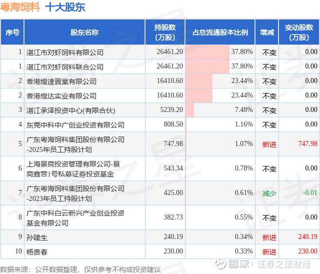 根据粤海饲料2025年三季报公布的十大股东详情如下: