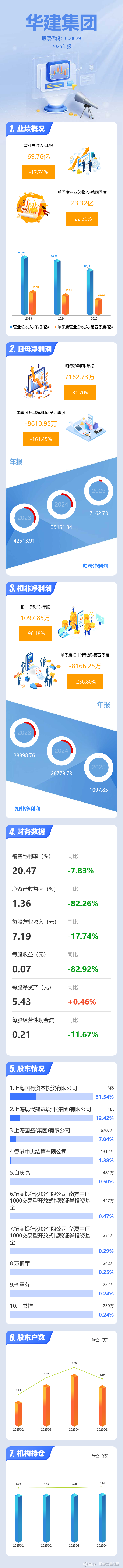 证券之星消息,华建集团2025年年报显示,当年度公司主营收入69.76亿元,同比下降17.75%;归母净利润7162.73万元,同比下降81.7%;扣非净利润1097.85万元,同比下降96.19%;其中2025年第四季度,公司单季度主营收入23.32亿元,同比下降22.3%;单季度归母净利润-8610.95万元,同比下降161.45%;单季度扣非净利润-8166.25万元,同比下降236.8%;负债率63.7%,投资收益5087.35万元,财务费用992.73万元,毛利率20.47%。