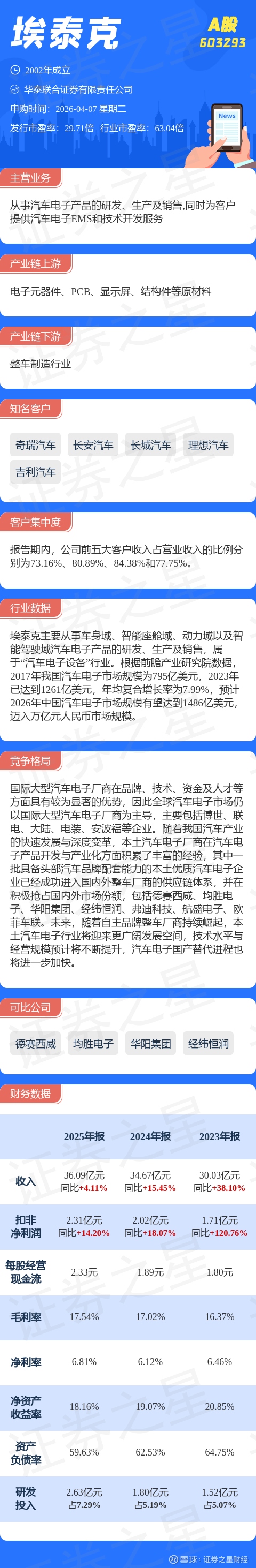 证券之星消息,埃泰克4月7日网上申购,申购代码为732293,中签号公布日期为4月9日。该股概况请见下图: