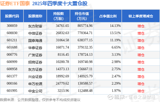证券ETF国泰的前十大重仓股如下: