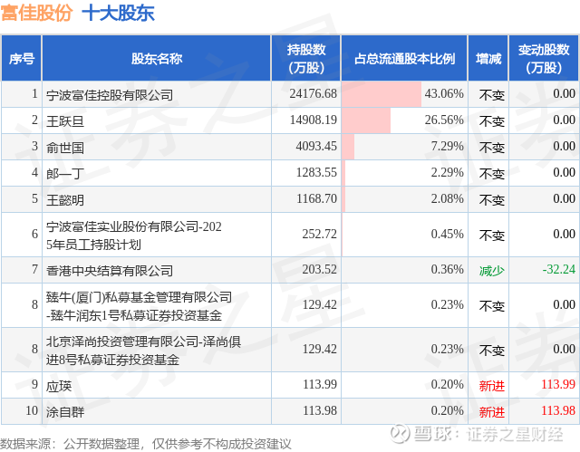 根据富佳股份2025年年报公布的十大股东详情如下: