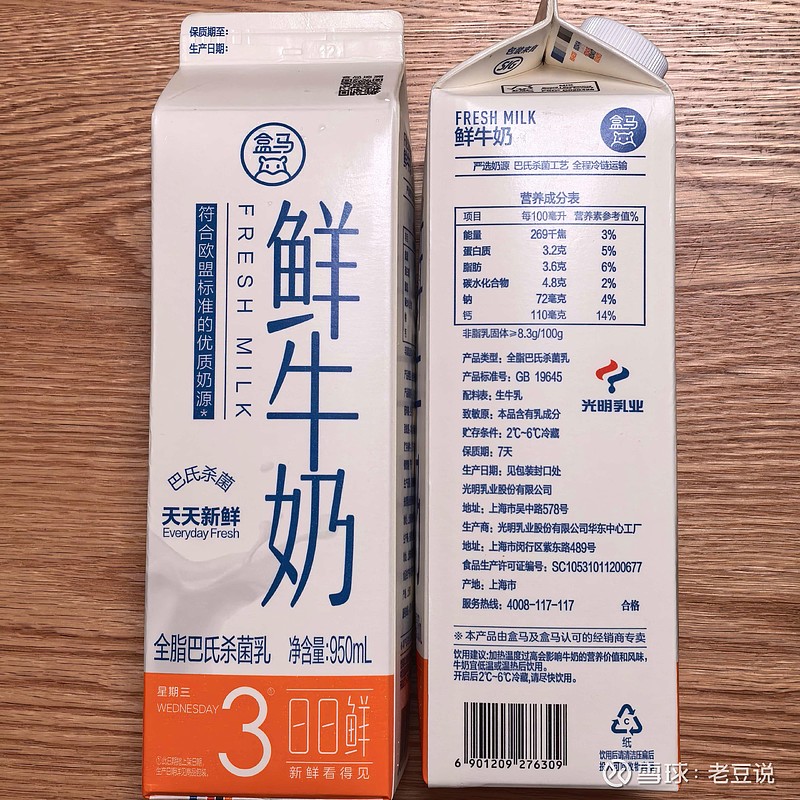 盒马的鲜奶供应商本月改光明了(至少上海是),之前很长一段时间是新乳业,再之前好像是蒙牛...送货到家会员日仅需6.95元一盒,基础鲜奶价格已经卷得不成样子了,也卷了至少有四五年了,乳企也是脑壳疼...#豆哥体验馆# $阿里巴巴(BABA)$ $光明乳业(SH600597)$ $新乳业(SZ002946)$