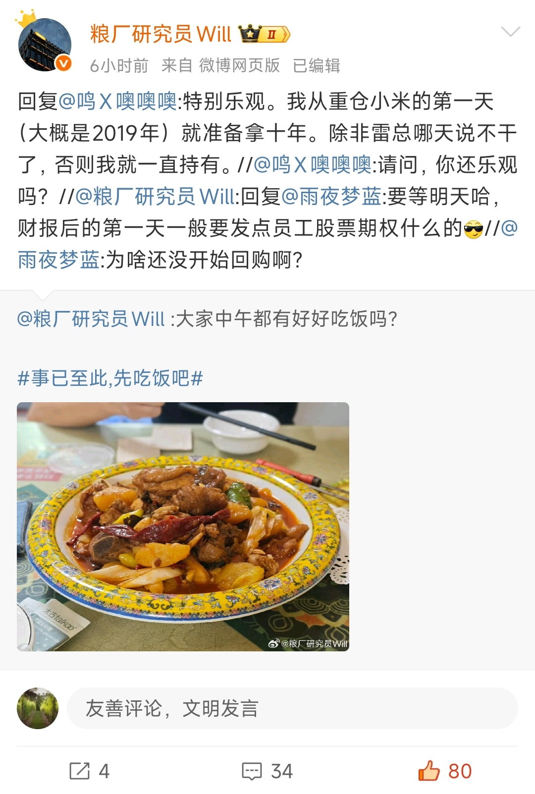 成本低的股东,可以利用好自己低成本,作为自己的安全垫;成本高的股东,可以在好好审视自己当初买入小米的逻辑,并且结合当下的状况,判断公司未来的发展。无论大家是买是卖,如果家人有不理解的,大家都要尽量做好和家人的沟通,尽量不要让股价的涨跌,太影响日常的生活。