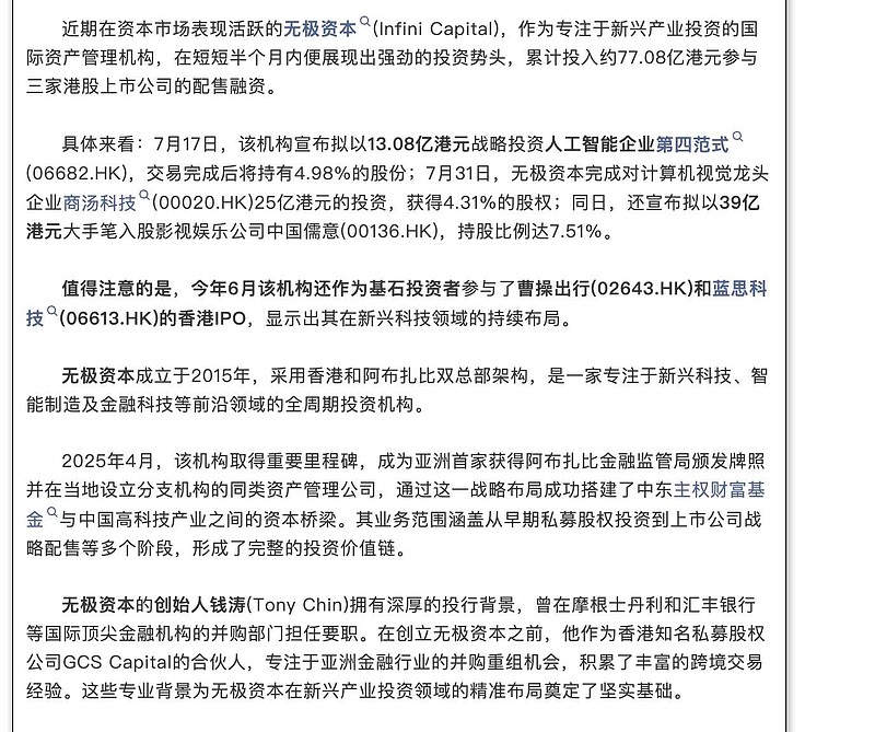$中手游(00302)$无极资本投资中手游:2024 年 10 月 10 日,中手游与无极资本等三名认购人订立认购协议。无极资本管理的基金认购约 6333 万股中手游股份,每股认购价为 0.9 港元,总代价约 5700 万港元。此次投资是无极资本首次入股中手游,双方将在国际化资本市场上展开深度合作,推动中手游被更多优质投资者关注和投资。无极资本年收益超高,自成立以來年均回报超过100 %!作为长期投资资金,其特点就是深入调研、集中投资、战略合作⋯⋯,这背后的大佬不但有钱,还有权有势啊。。