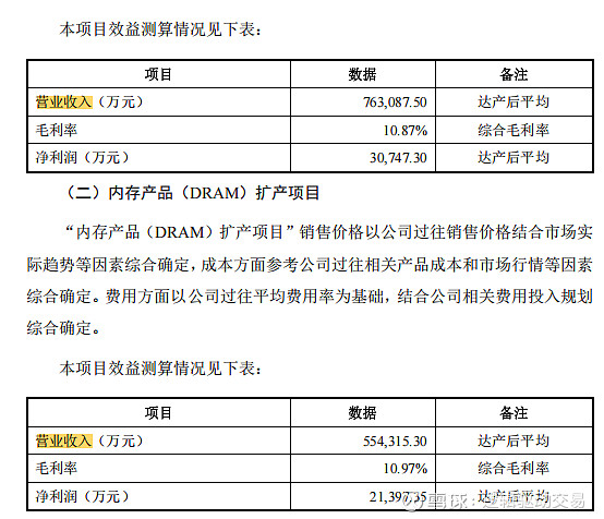 扩能:“固态硬盘(SSD)扩产项目”达产后平均每年新增150万个固态硬盘产品(行业常规时测算营收为76.3亿,平均一个5086元)“内存产品(DRAM)扩产项目”达产后平均每年新增690万条内存条产品(行业常规时测算营收为55.4,平均一条802元)。合计营收132亿元,确实说再造一个当前的德明利不为过。