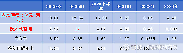 产品增速:从下图可以看出,公司增长最快的产品是嵌入式存储,也是这次涨价的主力军。25上半年已达17亿元,环比317%,成为最大产品,这几年增速极其惊人。另外第二大增速产品是内存条,虽然规模还不算大,但是速度极快,也有嵌入式存储前几年的影子,也是本次扩能的重点,达产55亿元,是25年规模的5倍以上。Q3营收3.55亿元,已经超过上半年的营收。固态硬盘规模与嵌入式存储相当,增速略逊嵌入式存储。