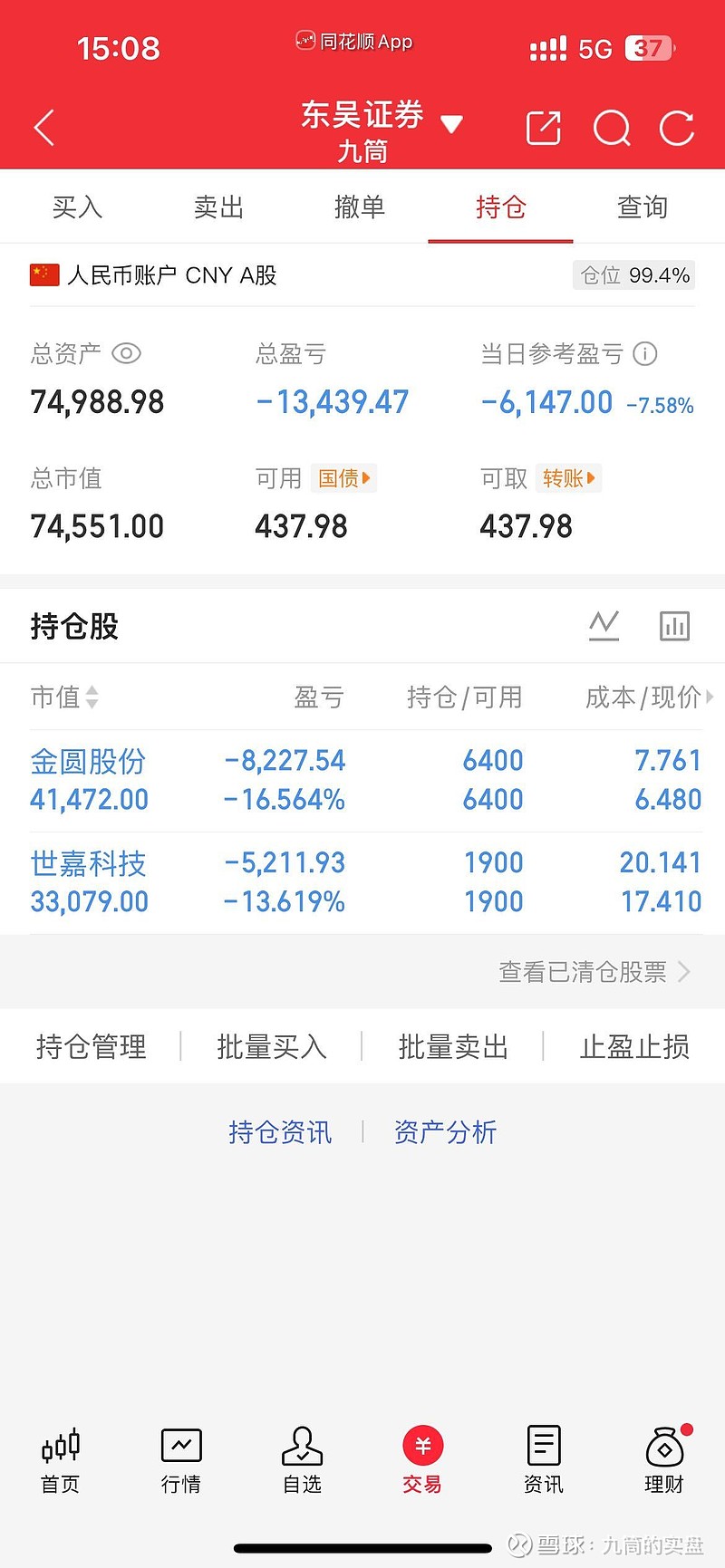 九筒的实盘