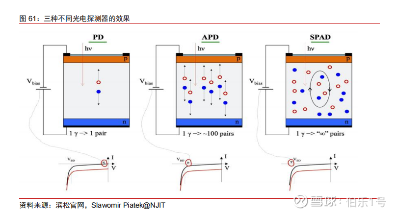 目前激光雷达所用的接收端主要分APD、SPAD/SiPM两大路线,这两种路线其实同根同源,都是利用二极管的雪崩击穿效应。