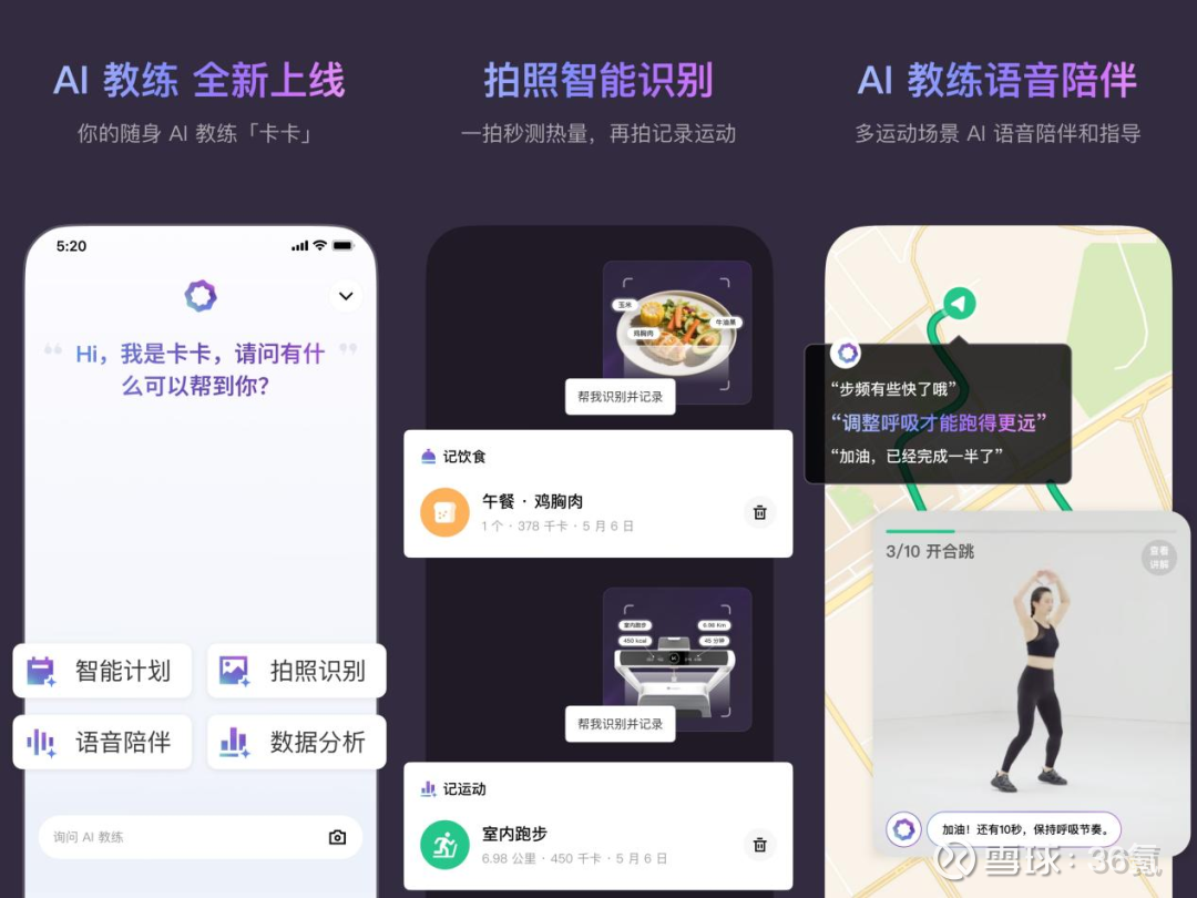 5月20日,Keep AI教练上线新版本,可为用户提供智能运动方案生成、智能训练指导、运动数据记录、饮食记录及评价等功能。