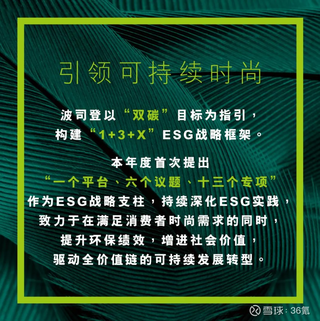 此前,波司登发布了“1+3+X”的ESG战略框架及管制架构,建立了以消费者为导向引领可持续时尚的ESG战略愿景;今年波司登持续深化实践,又提出“一个平台、六个议题、十三个专项”作为新的ESG战略支柱,把ESG全面融入企业战略与发展实践。