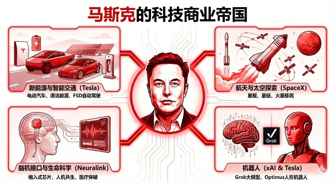 马斯克的科技商业帝国布局很广,智能电车、机器人、商业航天、脑机接口……这些科技前沿领域,他都有布局。