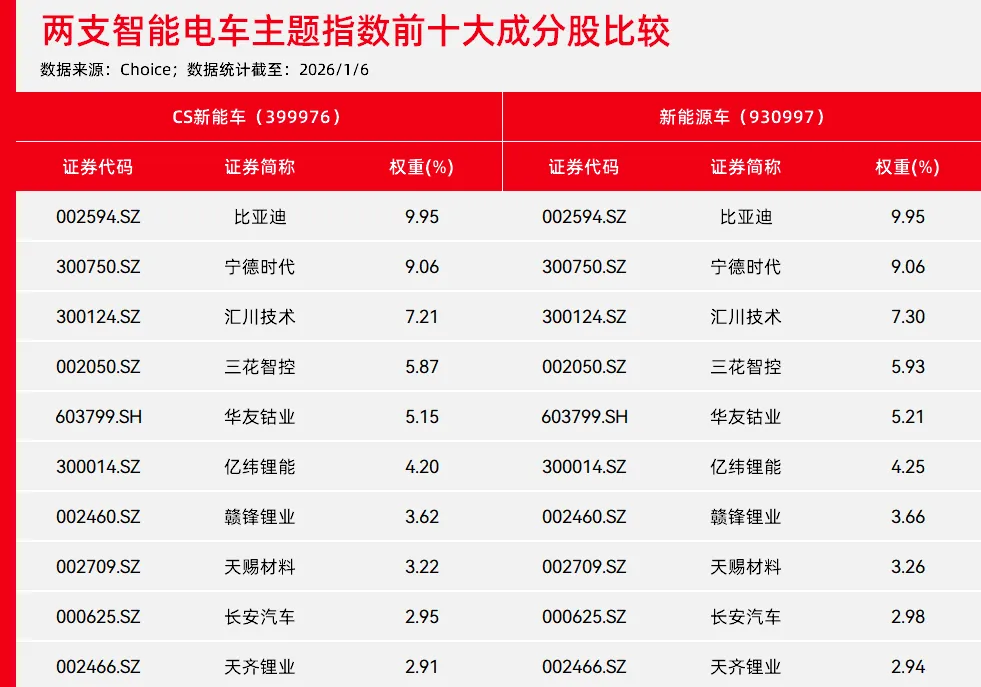 智能电车领域ETF主要追踪CS新能车(399976)和新能源车(930997)两支指数。