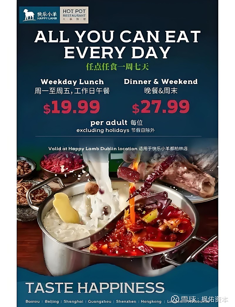快乐小羊则以供应链本土化构建核心优势,在澳洲选用比利时蓝羊,在英国选用威尔士羊,实现食材本地化采购与新鲜供应,既降低了跨境物流成本,又贴合本地食材偏好,其欧美门店凭借健康新鲜的定位收获广泛认可,成为区域市场的热门选择。这些品牌的成功运营,构建起欧美中式火锅市场的激烈竞争格局,也为特海国际的扩张设置了多重壁垒。