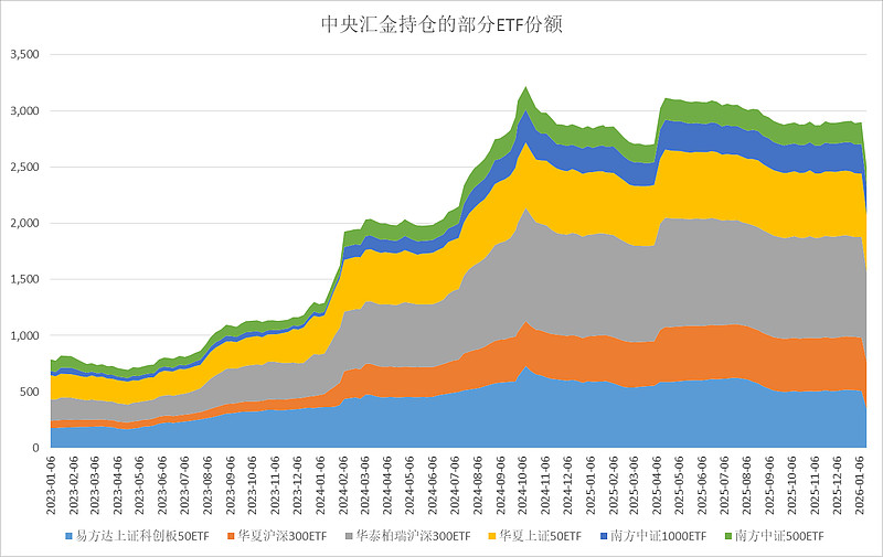 中央汇金持仓的部分ETF份额见上图,本周总份额下降了14%,回到了2024年8月的水平。