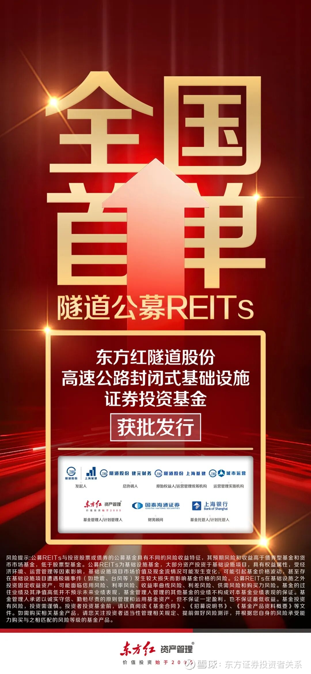 3月16日,由上海隧道工程股份有限公司作为发起人,东方证券旗下上海东方证券资产管理有限公司为管理人的“东方红隧道股份高速公路封闭式基础设施证券投资基金”获得中国证监会准予注册批文,成为2026年首个获批发行的公募REITs项目。
