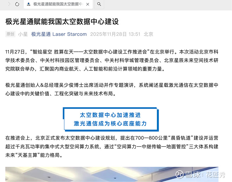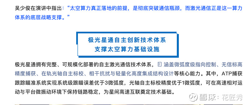 “太空算力真正落地的前提,是彻底突破通信瓶颈,而激光通信正是这一算力体系的底层战略支撑。”