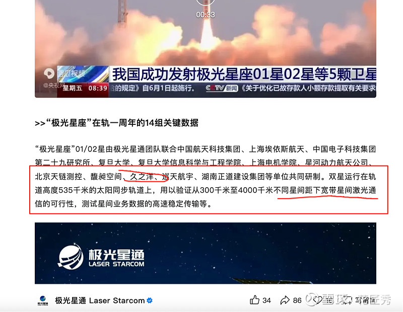 参建的极光星座用以验证从300千米至4000千米不同星间距下宽带星间激光通信的可行性,测试星间业务数据的高速稳定传输等。