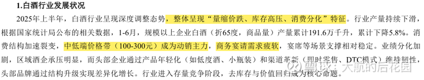 这意味着,现在白酒行业整体都不好过,分化不再是酒企之间的分化,而是价格带的分化。当下的状况是,商务宴请需求疲软,5月中旬新一轮限酒令出台以来,安徽算是处罚力度比较大的一个省份,听说有工作日全天禁酒以及“只要上桌就追责”的加码行为。白酒需求靠300元以下中低端价格带支撑。