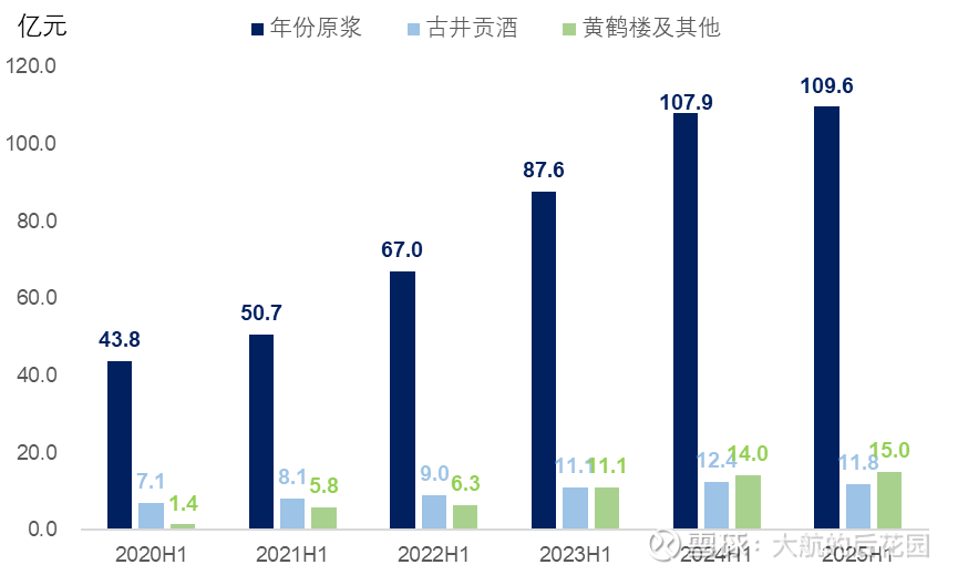 上半年,年份原浆的营收微增。根据券商调研数据,古5、献礼版这两款竞争激烈的百元入门中端酒表现平稳,百元价格带没有进一步被迎驾贡酒抢走份额。古8和古16的增长表现最好,这俩产品的价格带无论是需求条件还是竞争格局都相对好些。古20受冲击比较大,估计出现了被迫减量。