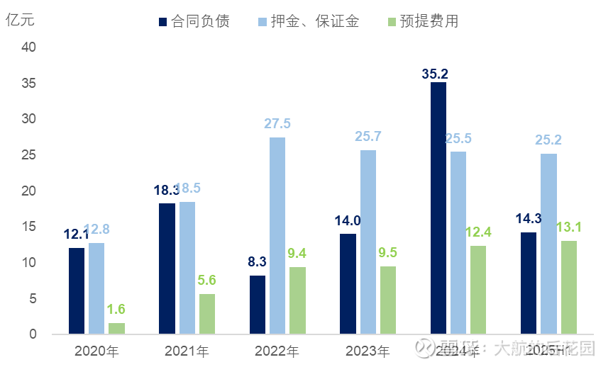 不过,古井贡对经销商的其他占款并没有减少,比如市场秩序和销售业绩保证金(体现为负债中的押金、保证金,以及预提费用)。大航推测,这部分押金主要是酒厂为了让经销商老老实实卖货所收取的,一旦经销商违规出货,或者完不成自己应该完成的销售业绩,酒企就会扣留这部分资金。